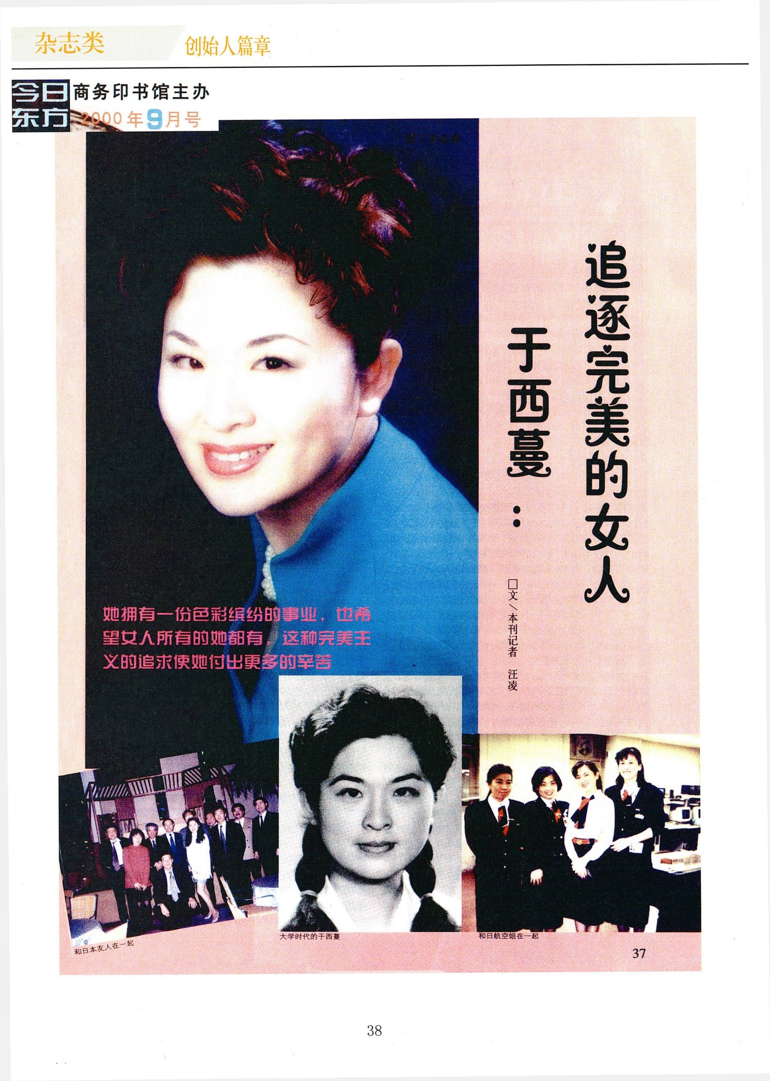 1987年,她被公派去日航培訓一年。西蔓去了日本,沒想到在日本一待11年。碰上這個機會,她自然想了解日本大學的相關科目,請人帶著參觀一些大學。她去了早稻田大學,那里有一個“運輸經濟學”專業,航空經濟學也包括其中。當時恰巧遇到它的校慶日,那種自由、熱烈、開放的氣氛,是當時中國大學所沒有的,這給西蔓留下極其深刻的印象。此外,她是對美敏感的人,處在那個講究禮儀的社會,日本女性的優雅、情趣、裝扮的知識和技巧,她不可能不觀察,引起共鳴。如今的西蔓,舉手投足間,在一些細節上,已然表露出一些日本女性的風格:她很遠就笑容可掬、身體略向前傾地迎過來;告別時頻頻彎腰頷首,謙恭有禮;喝飲料偶爾打嗝,她會一手掩口、一邊抱歉“對不起”。諸如此類,令人賞心悅目。