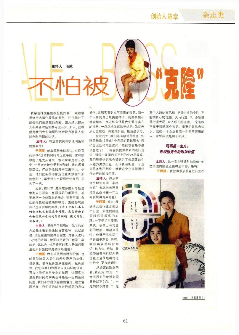 主持人:據我所了解到的,你工作的方式最主要的是通過語言指導,也就是說,你坐在幽雅的辦公室里,對客人進行1小時的講解,就可以把她的“色彩”賣給她,你認為,你所擁有的客人是如何衡量他所付出的錢是物有所值的?