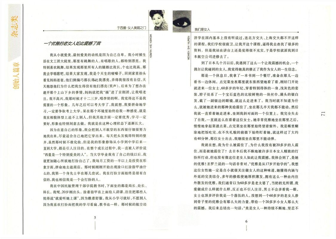 我喜歡于西蔓的商業頭腦。我喜歡她能把理論與實踐有機地結合起來,然后以美麗的名義大賺其錢,賺得堂堂正正,賺得優優雅雅。