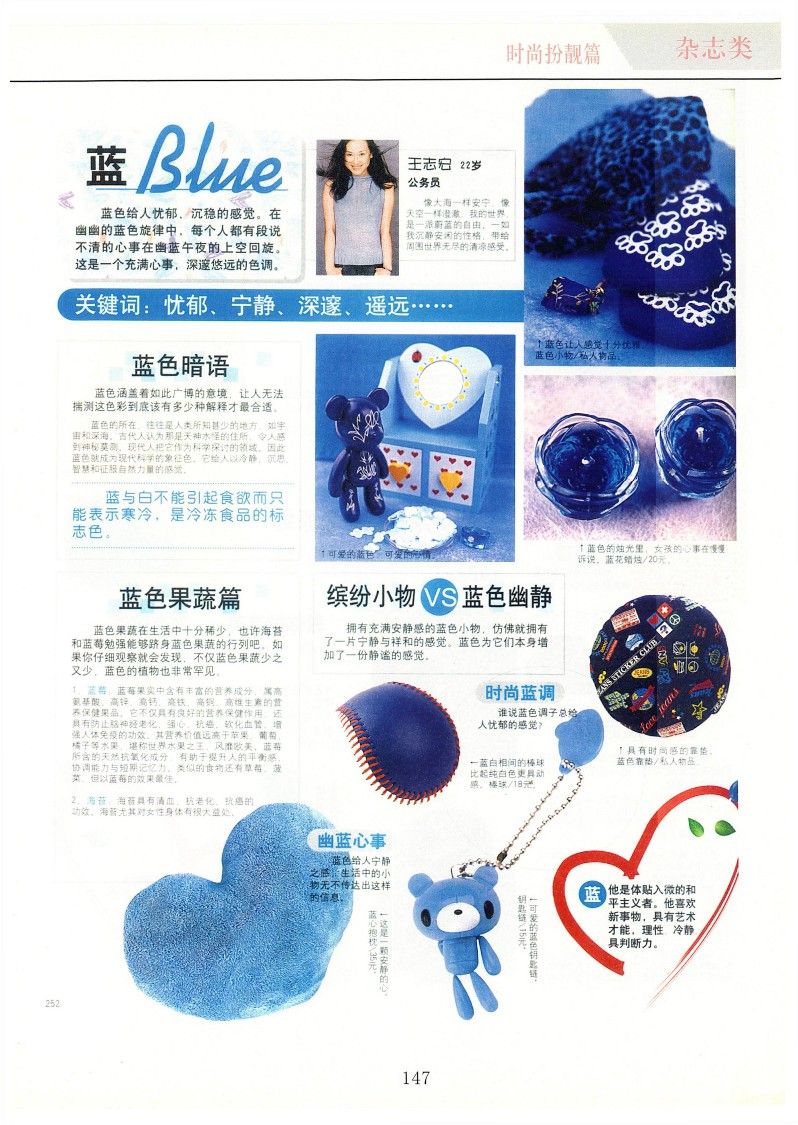 藍色的所在,往往是人類所知甚少的地方,如宇宙和深海。古代人認為那是天神水怪的住所,令人感到神秘莫測。現(xiàn)代人把它作為科學探討的領(lǐng)域。因此藍色就成為現(xiàn)代科學的象征色。它給人以冷靜、沉思、智慧和征服自然力量的感覺。