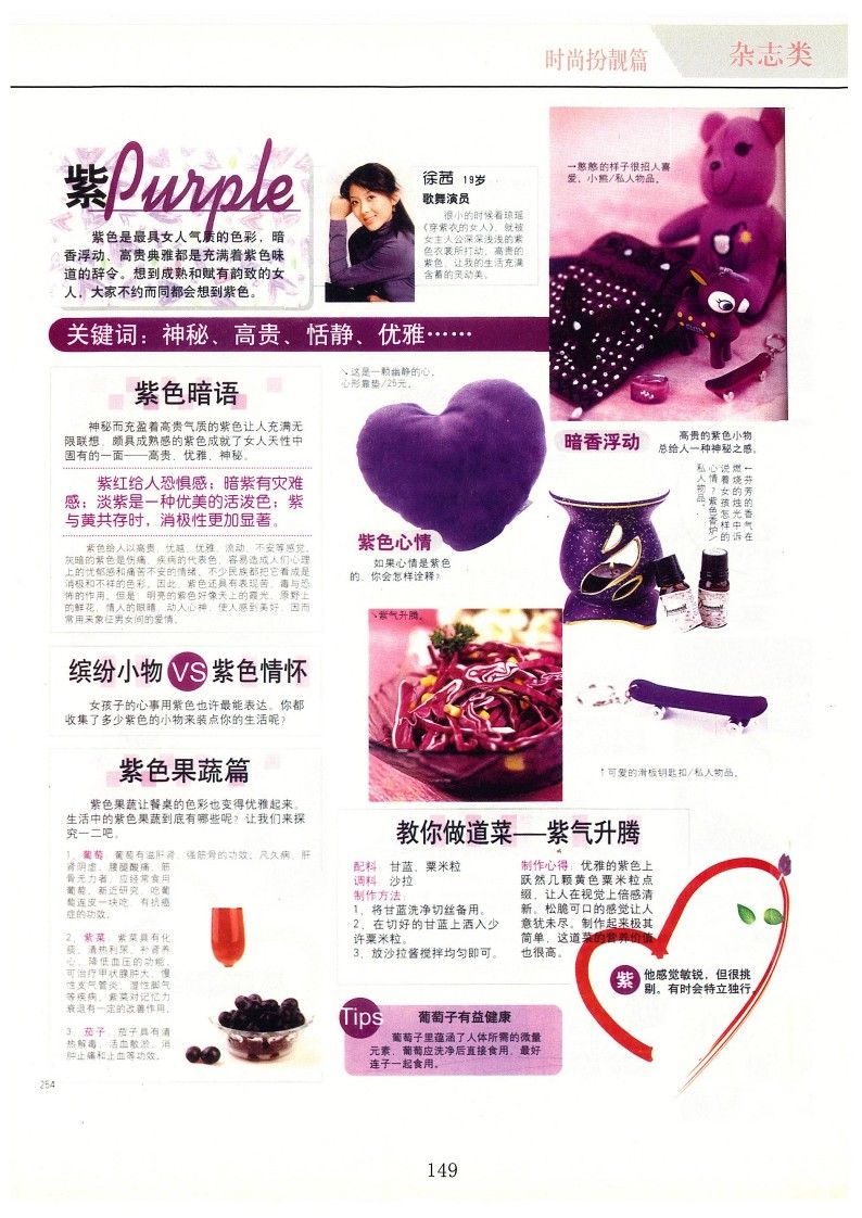 紫紅給人恐懼感;暗紫有災難感;淡紫是一種優(yōu)美的活潑色;紫與黃共存時,消極性更加顯著。