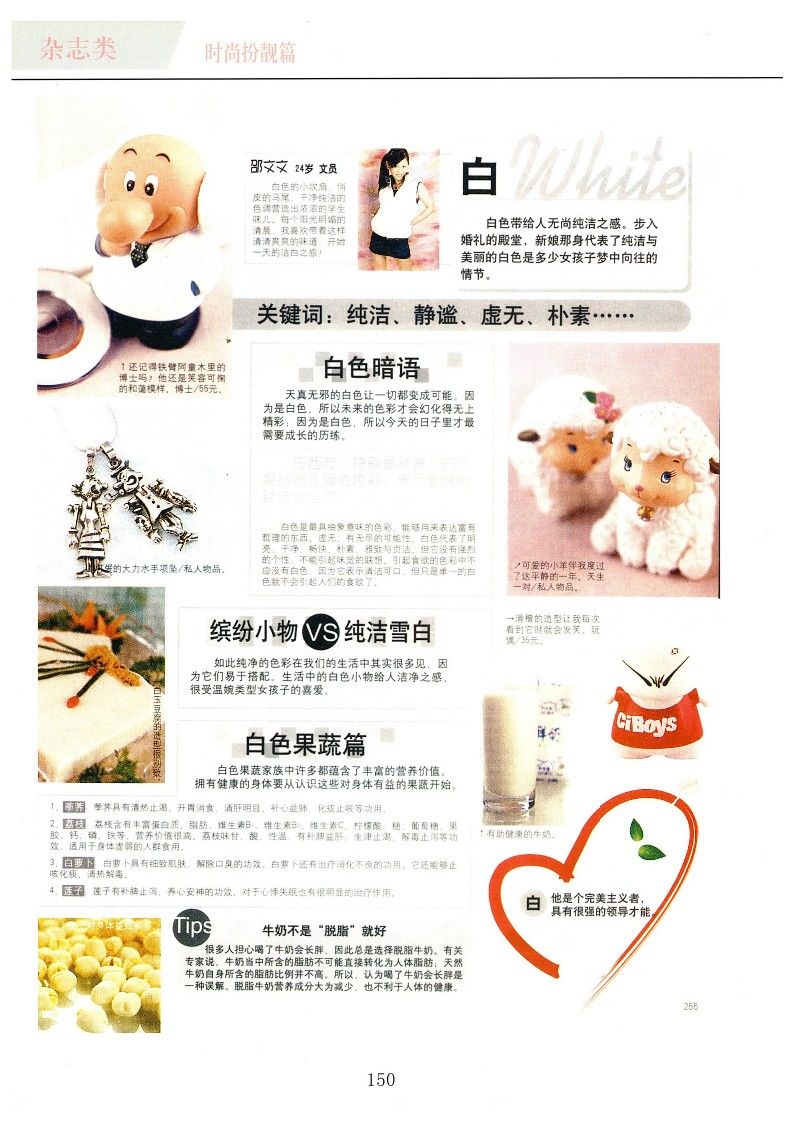 如此純凈的色彩在我們的生活中其實很多見,因為它們易于搭配。生活中的白色小物給人潔凈之感,很受溫婉類型女孩子的喜愛。