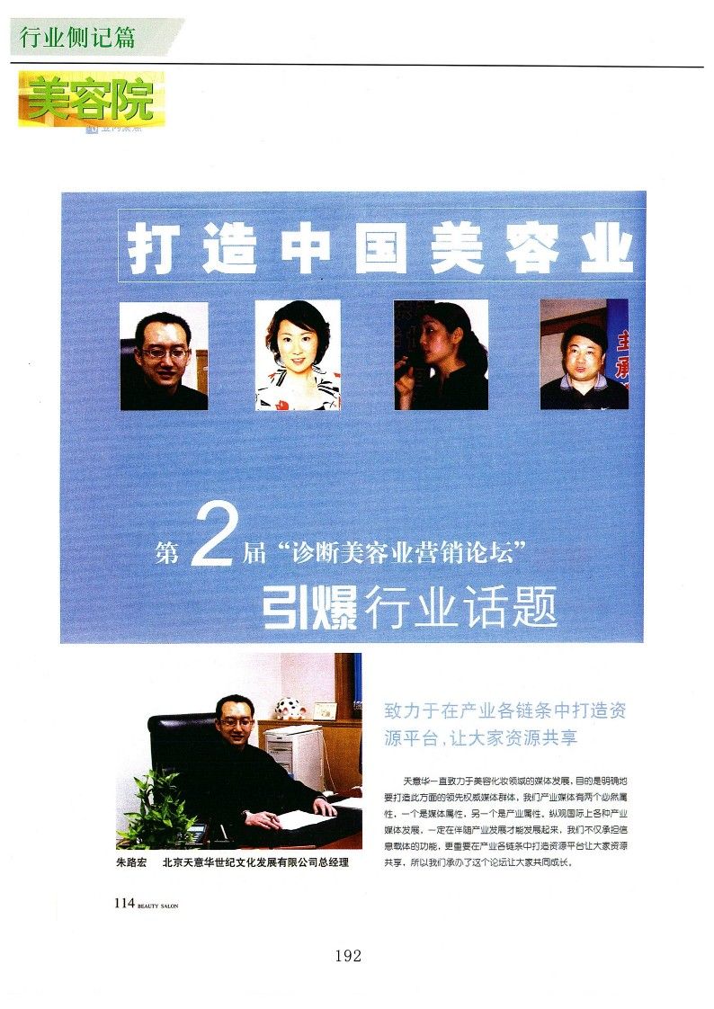 《美容院》和《中國化妝品》雜志自2003年9月創辦了“診斷中國美容業營銷論壇”的系列活動后,得到了業內普遍好評,為進一步提高營銷企劃管理在美容業的應用,兩大傳媒再次于20屆美博會舉辦了此次“診斷美容業營銷論壇”的活動,聯合行業內知名營銷專家進一步研究如何促進行業的健康發展。作為美容業的媒體從業人員,我們深深感到有義務為美容業理清方向。