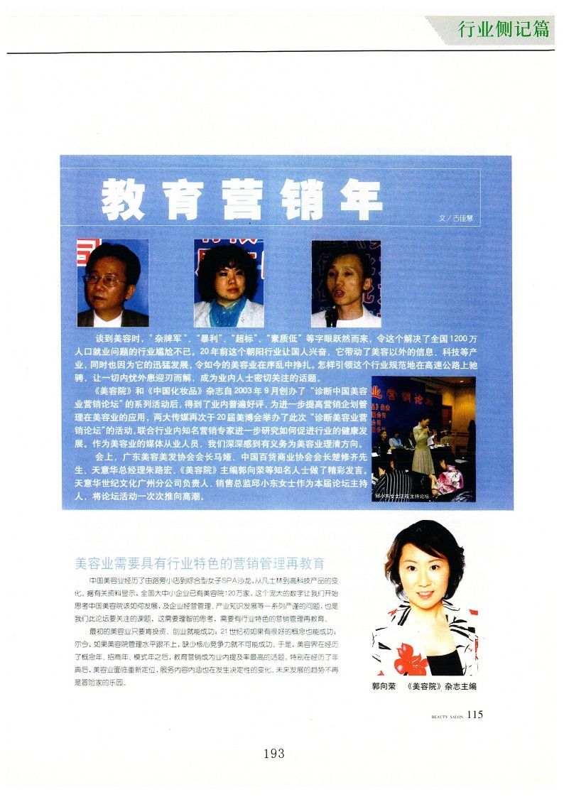 中國美容業經歷了由路旁小店到綜合型女子SPA沙龍,從凡士林到高科技產品的變化。據有關資料顯示,全國大中小企業已有美容院120萬家,這個龐大的數字讓我們開始思考中國美容院該如何發展及企業經營管理、產業知識發展等一系列嚴謹的問題,也是我們此論壇要關注的課題,這需要理智的思考,需要有行業特色的營銷管理再教育。