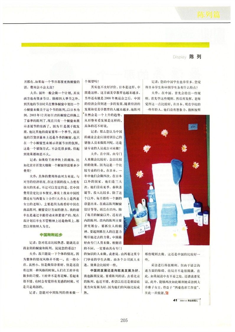 記者:首先您能否就您在日本從事陳列師這么多年的經(jīng)歷來(lái)談一談?