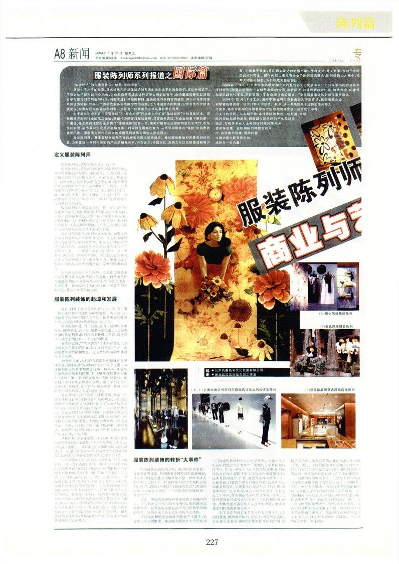 2004年7月8日,在中國市場學會和北京西蔓色彩文化發展有限公司共同舉辦的首屆陳列研討會上,西蔓公司指出:“如何從單純地加強‘消費場所’的建設轉移到注重‘消費理念’的建設和提供超前性服務,是目前國內零售業應考慮的重點。”中國服裝賣場陳列師任重而道遠。
