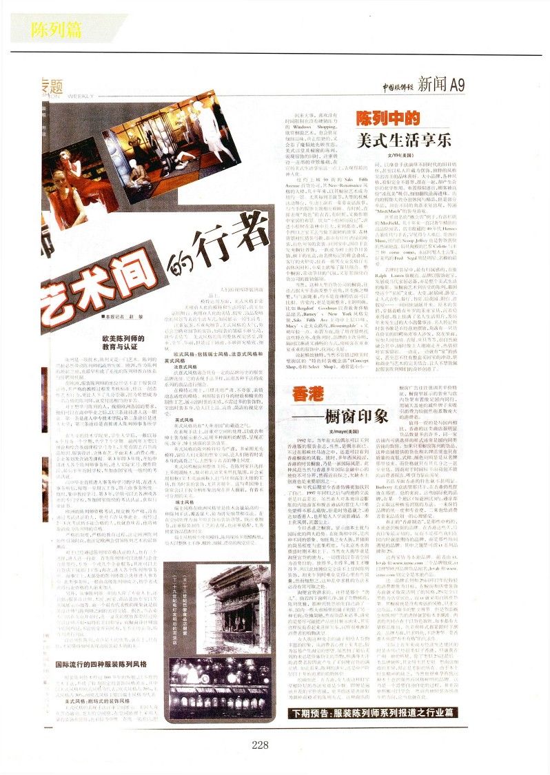 對于服裝企業而言,“吸引眼球”和“概念消費”已經成為它們在“體驗經濟”中的具體訴求。而根據西方時裝行業的成功經驗,櫥窗作為顧客對服裝品牌,對零售專營店,對企業形象了解的第一個渠道,毫無疑問地成為企業操作“體驗經濟”的第一站。如何對櫥窗及店堂陳列進行藝術性、市場性的布置,成為服裝企業是否能夠在第一時間抓住顧客注意力,從而引導顧客在“體驗”中消費的重要手段。服裝陳列師作為新興的櫥窗及店堂陳列職業人應運而生。