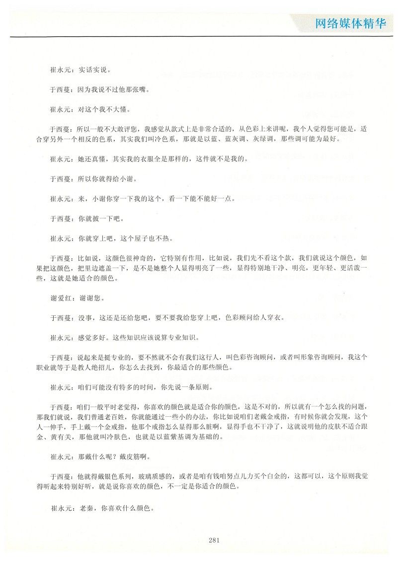 崔永元:剛才問你是不是經過精心地搭配,你說就是隨便拿起來一穿的,實際上她看出來了,你這是經過精心地選擇。